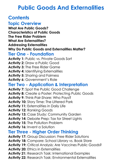 Public Goods And Externalities Worksheet Activity Booklet