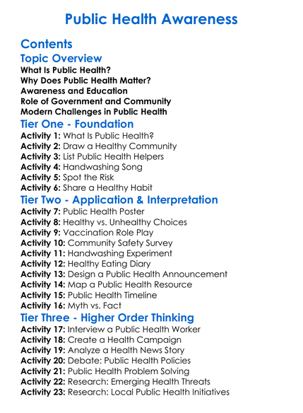 Public Health Awareness Worksheet Activity Booklet