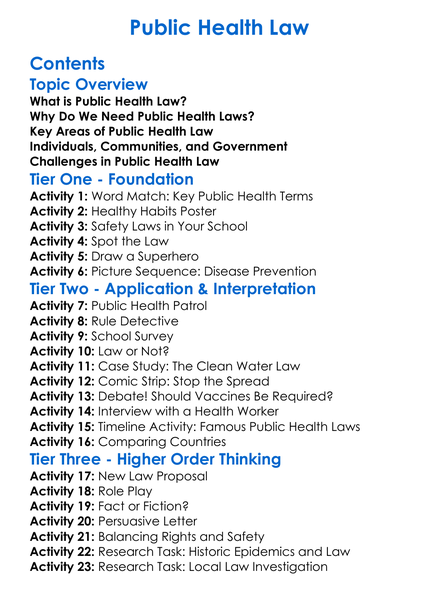 Public Health Law Worksheet Activity Booklet
