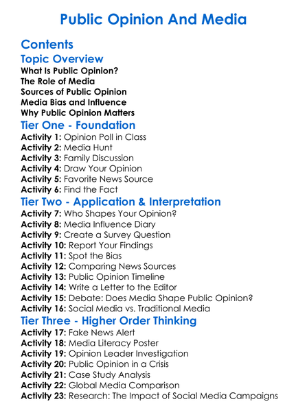 Public Opinion And Media Worksheet Activity Booklet