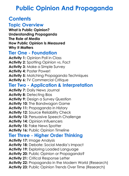 Public Opinion And Propaganda Worksheet Activity Booklet