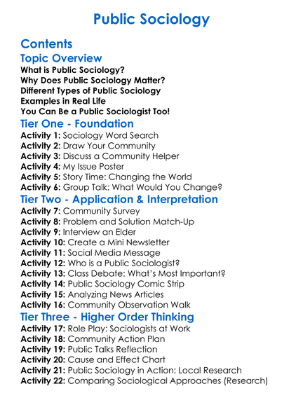 Public Sociology Worksheet Activity Booklet