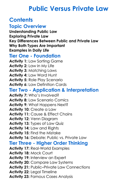 Public Versus Private Law Worksheet Activity Booklet