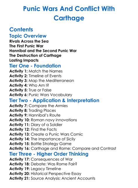Punic Wars And Conflict With Carthage Worksheet Activity Booklet