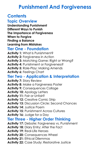 Punishment And Forgiveness Worksheet Activity Booklet