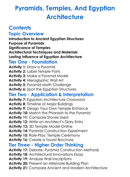Pyramids Temples And Egyptian Architecture Worksheet Activity Booklet