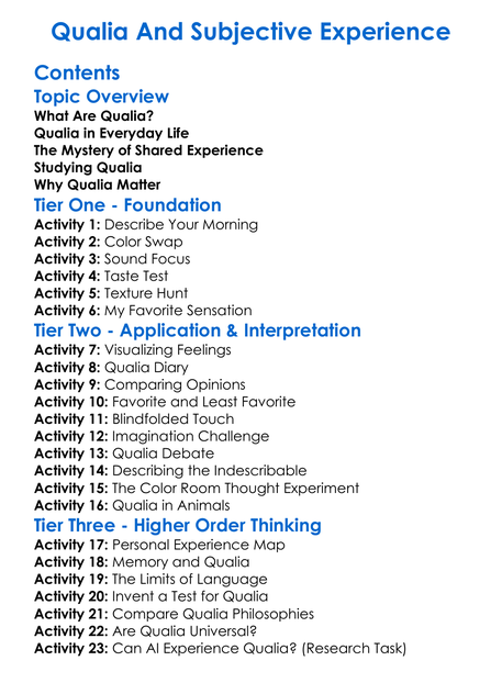 Qualia And Subjective Experience Worksheet Activity Booklet