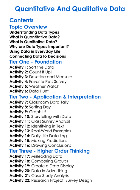 Quantitative And Qualitative Data Worksheet Activity Booklet