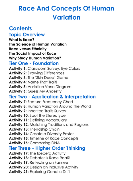 Race And Concepts Of Human Variation Worksheet Activity Booklet
