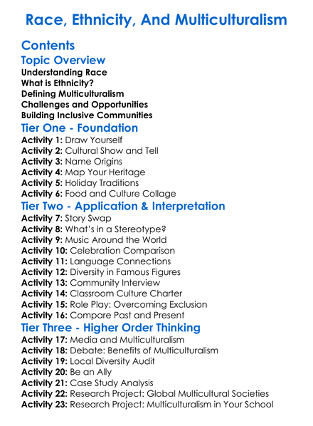 Race Ethnicity And Multiculturalism Worksheet Activity Booklet