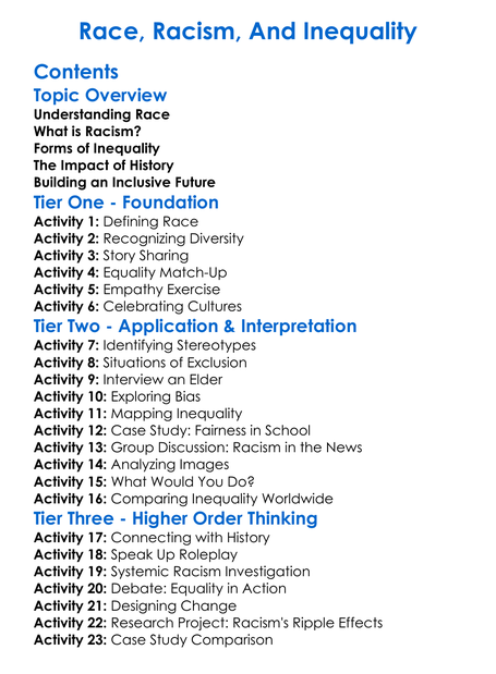 Race Racism And Inequality Worksheet Activity Booklet