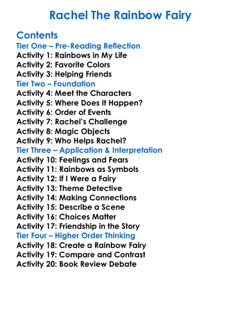 Rachel The Rainbow Fairy Worksheet Activity Booklet