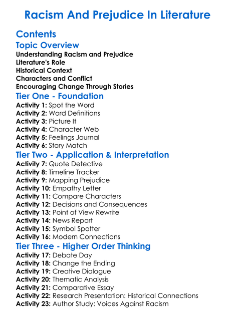 Racism And Prejudice In Literature Worksheet Activity Booklet