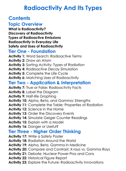 Radioactivity And Its Types Worksheet Activity Booklet