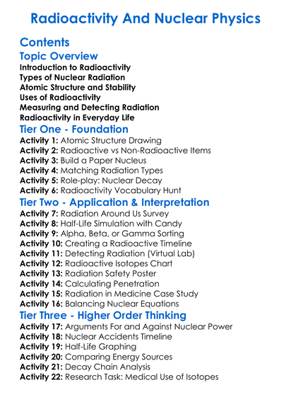 Radioactivity And Nuclear Physics Worksheet Activity Booklet