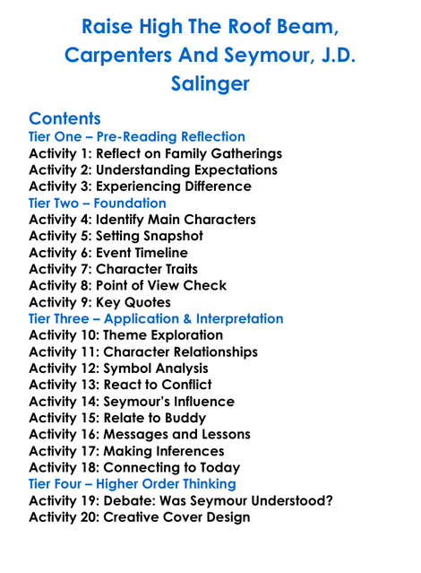 Raise High The Roof Beam Carpenters And Seymour Jd Salinger Worksheet Activity Booklet