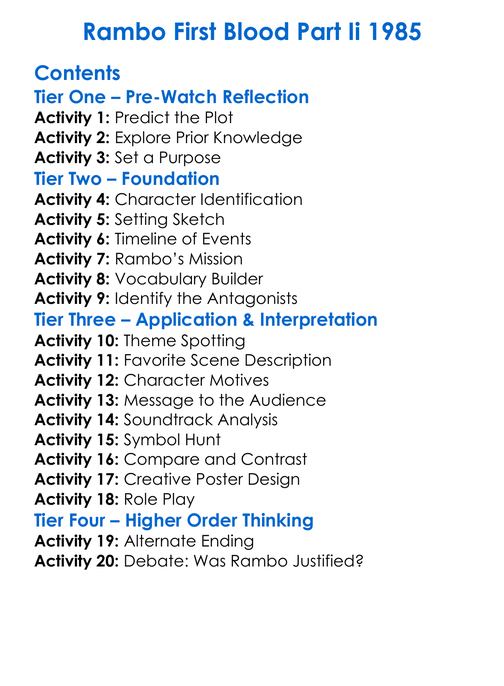 Rambo First Blood Part Ii 1985 Worksheet Activity Booklet