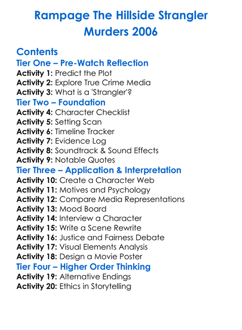 Rampage The Hillside Strangler Murders 2006 Worksheet Activity Booklet