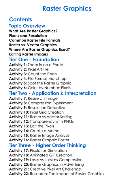 Raster Graphics Worksheet Activity Booklet