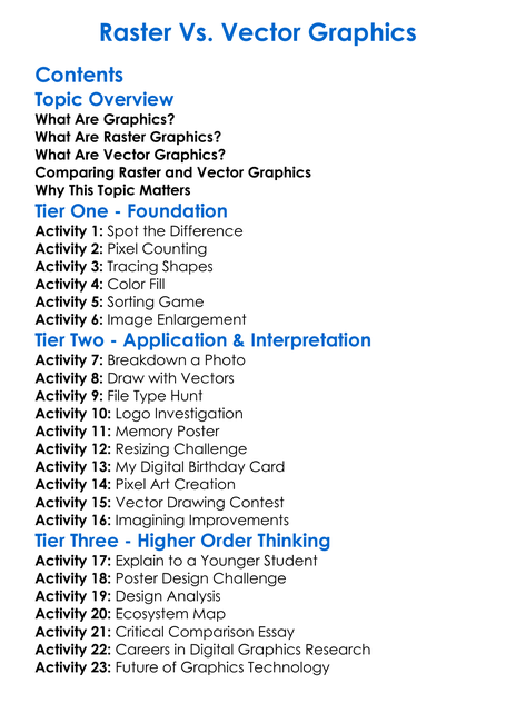 Raster Vs Vector Graphics Worksheet Activity Booklet