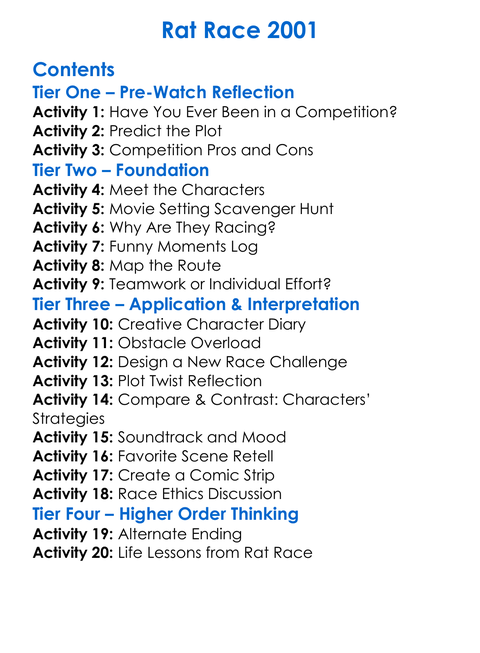Rat Race 2001 Worksheet Activity Booklet