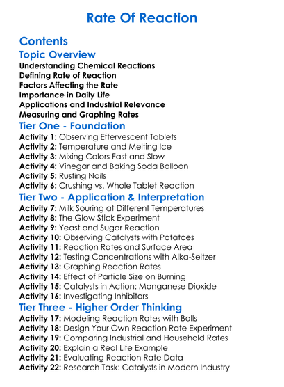 Rate Of Reaction Worksheet Activity Booklet