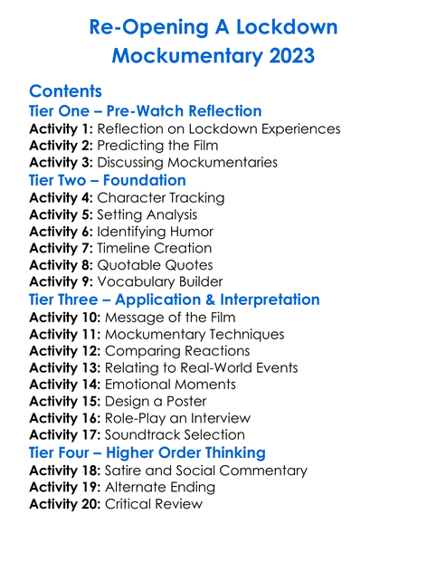 Re-Opening A Lockdown Mockumentary 2023 Worksheet Activity Booklet