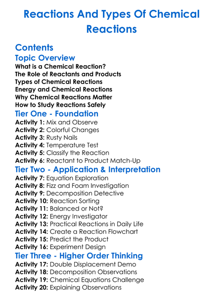 Reactions And Types Of Chemical Reactions Worksheet Activity Booklet