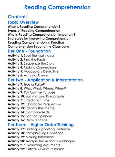 Reading Comprehension Worksheet Activity Booklet