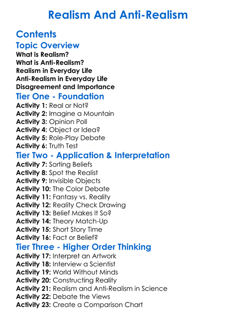 Realism And Anti-Realism Worksheet Activity Booklet