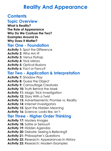 Reality And Appearance Worksheet Activity Booklet