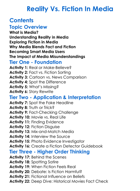 Reality Vs Fiction In Media Worksheet Activity Booklet