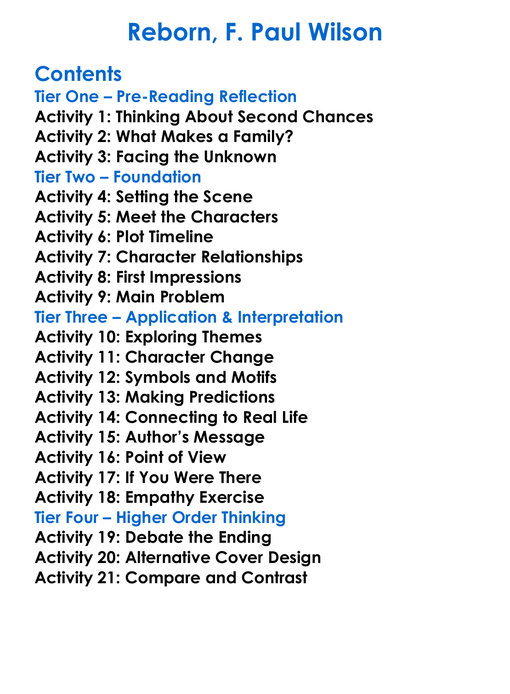 Reborn F Paul Wilson Worksheet Activity Booklet