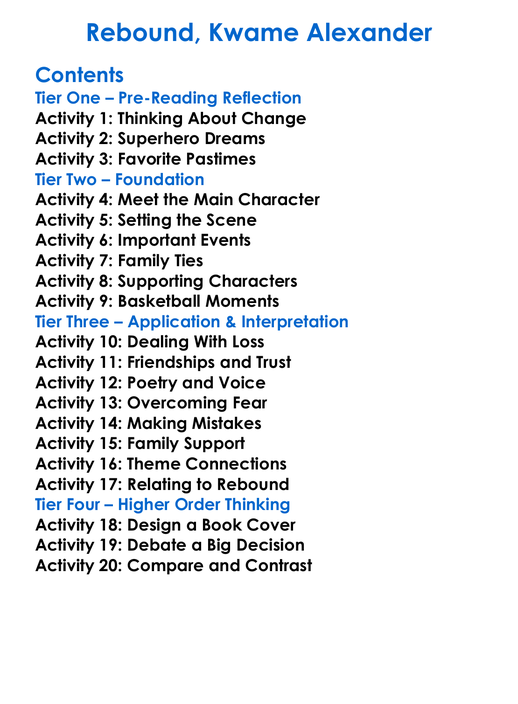 Rebound Kwame Alexander Worksheet Activity Booklet