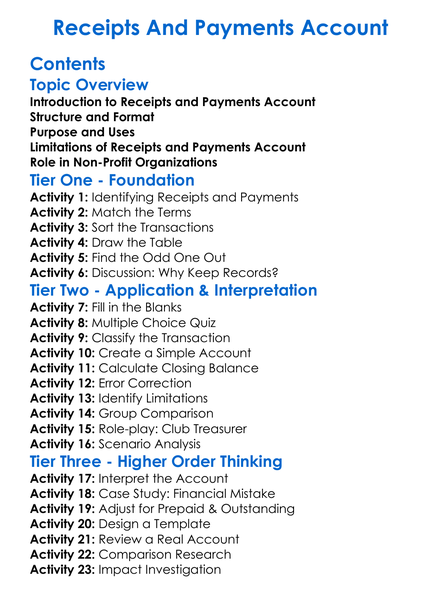 Receipts And Payments Account Worksheet Activity Booklet