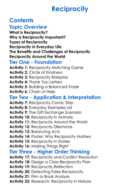 Reciprocity Worksheet Activity Booklet