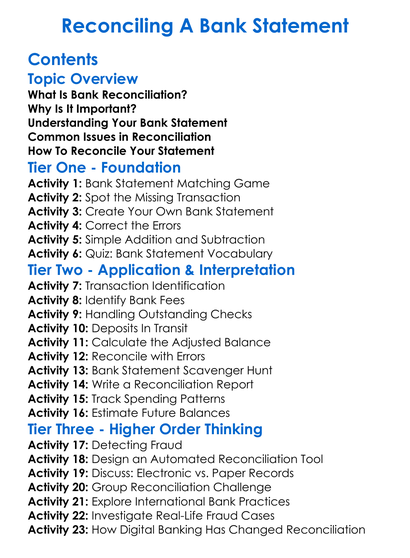 Reconciling A Bank Statement Worksheet Activity Booklet
