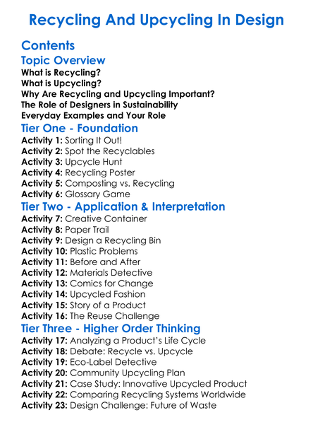 Recycling And Upcycling In Design Worksheet Activity Booklet