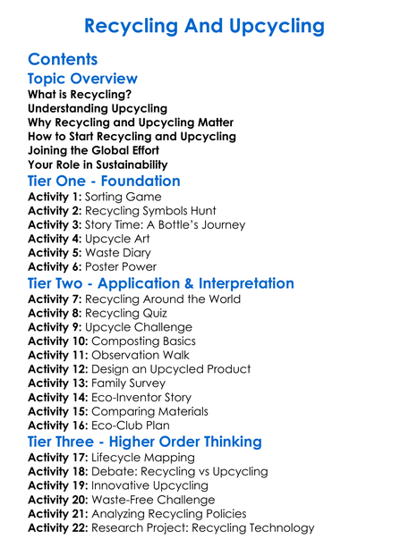 Recycling And Upcycling Worksheet Activity Booklet