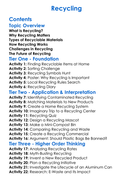 Recycling Worksheet Activity Booklet