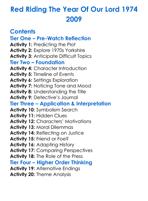 Red Riding The Year Of Our Lord 1974 2009 Worksheet Activity Booklet