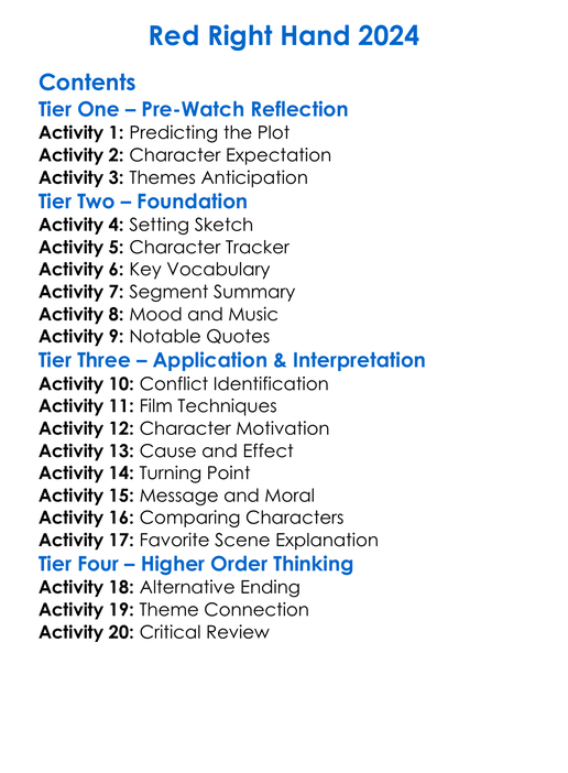 Red Right Hand 2024 Worksheet Activity Booklet
