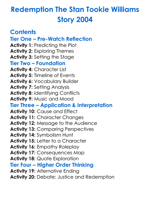 Redemption The Stan Tookie Williams Story 2004 Worksheet Activity Booklet