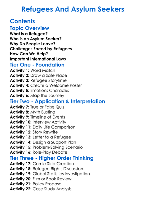 Refugees And Asylum Seekers Worksheet Activity Booklet