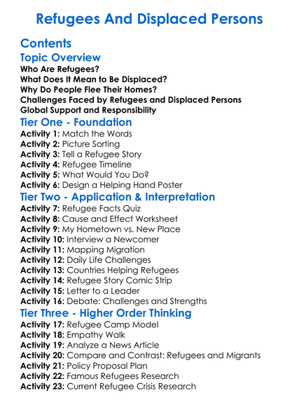 Refugees And Displaced Persons Worksheet Activity Booklet