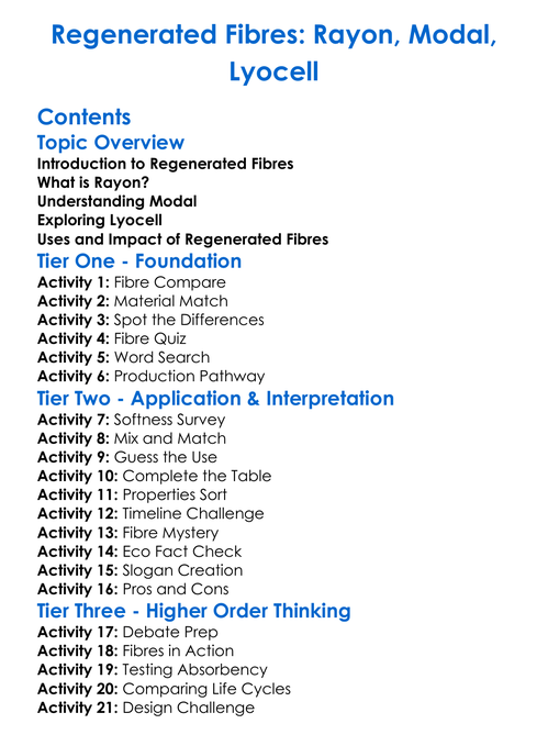 Regenerated Fibres Rayon Modal Lyocell Worksheet Activity Booklet