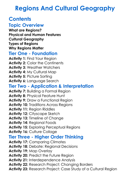 Regions And Cultural Geography Worksheet Activity Booklet