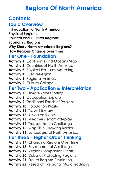 Regions Of North America Worksheet Activity Booklet