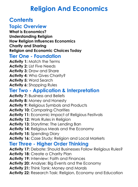 Religion And Economics Worksheet Activity Booklet