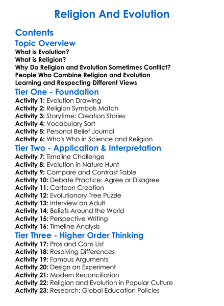 Religion And Evolution Worksheet Activity Booklet